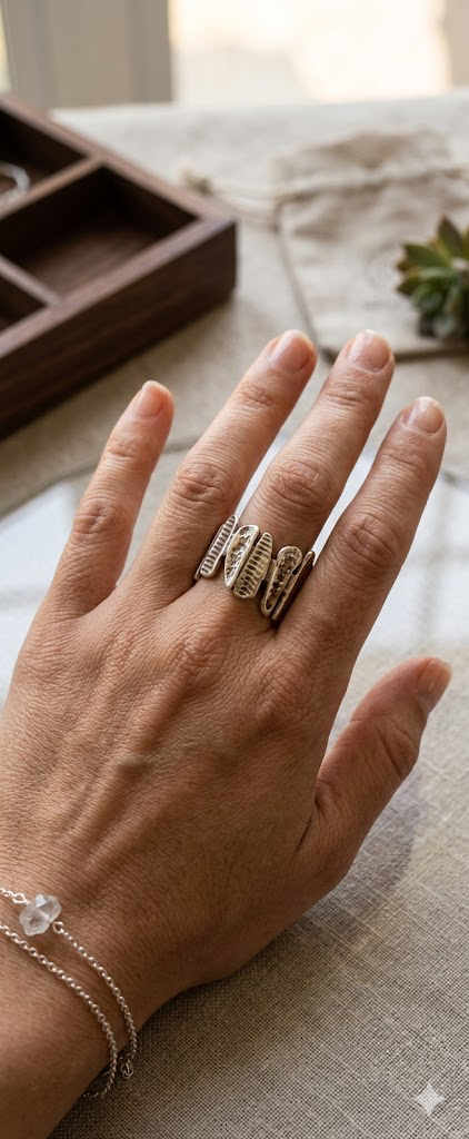 ¡Dale un toque cool a tu look! Este anillo de acero inoxidable con diseño de placas texturizadas es súper moderno y original. Está fabricado en acero inoxidable de alta calidad y su acabado texturizado le da un aire actual y urban. Súper versátil, combina con todo: desde jeans y camiseta hasta un vestido bohemio. ¡Un básico con mucha personalidad que no puede faltar en tu joyero!