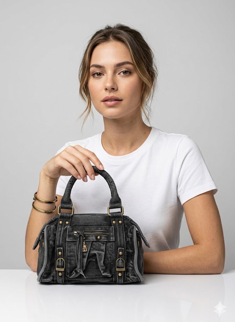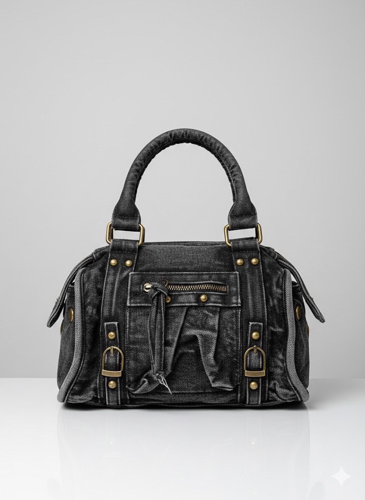 Tu compañero ideal para el día a día en la ciudad. Este bolso estilo hobo, confeccionado en tela vaquera negra de alta calidad, es tan práctico como estiloso. Su tamaño es perfecto para llevar todo lo que necesitas sin sacrificar la comodidad. Cuenta con múltiples compartimentos exteriores (frontal con cremallera y laterales abiertos) para una organización impecable. Un diseño funcional con un toque casual chic que combina con todo.