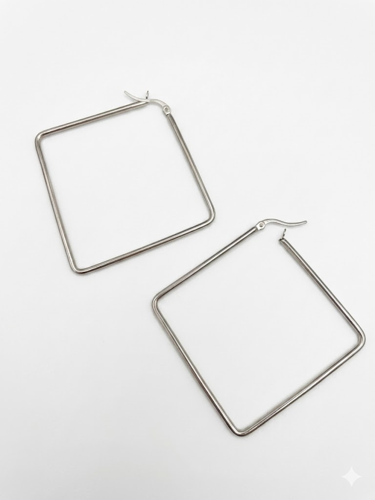 Añade un toque moderno y geométrico a tu estilo con estos elegantes pendientes de aro cuadrados. Fabricados en acero plateado de alta calidad, presentan un acabado pulido y brillante que captura la luz con cada movimiento. Su diseño minimalista y líneas limpias los convierten en el accesorio perfecto para cualquier ocasión, ya sea un look casual de día o un conjunto sofisticado de noche. Cuentan con un cierre de bisagra seguro y cómodo para usar durante todo el día.